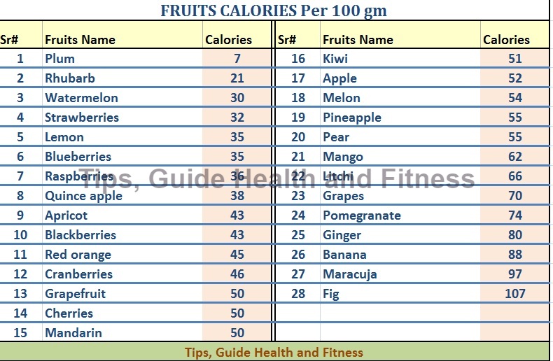 Tips Guide Health And Fitness Fruits Calories Calories Chart Calories In Fruits - 11 food calorie chart templates doc.